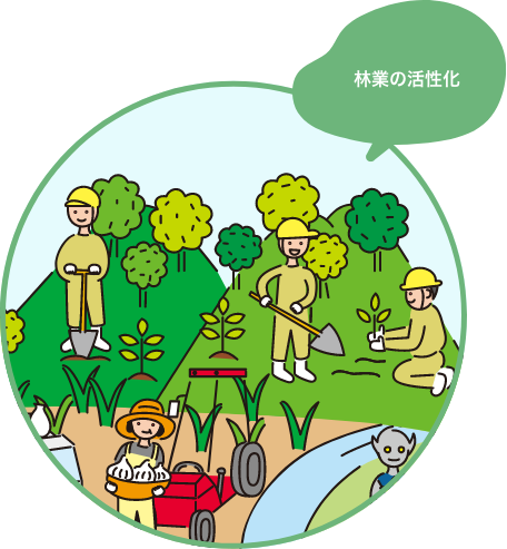 間伐や主伐後の再造林など森林の健全な保全・育成を継続的に行うことと共に、苗木生産の取り組みを図ることで、森林を持続可能な資源として活用することができます。手入れの行き届いた森林は、生物の生育環境を守り、森林が持つ多面的機能を維持します。