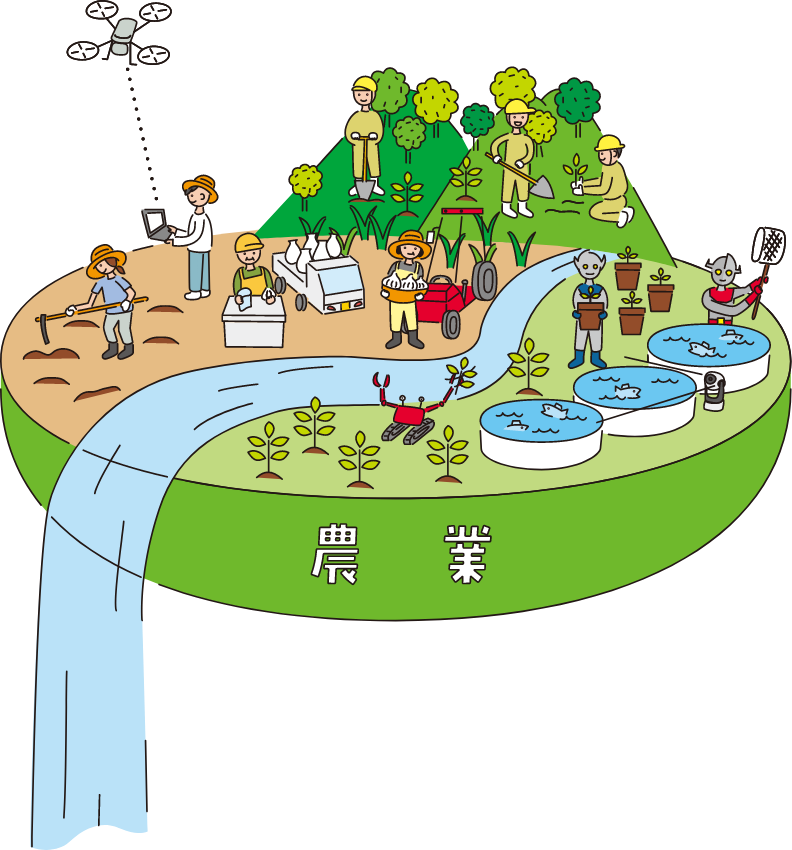 食料自給率を上げる、カギは生産者が儲かる仕組みを作ることです。生産性の向上と高付加価値商品の開発、食の6次産業化、スマート農業の導入、地産地消や流通の効率化、ブランディングやトレーサビリティの強化を推進。高付加価値で安定した安心安全な食の供給を叶えることが、農業を取り巻く社会課題の解消に繋がると考えています。