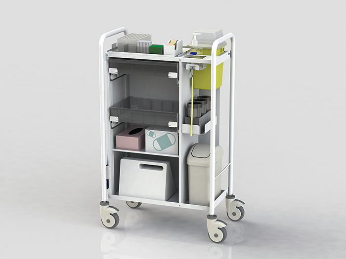 当社は、看護師様など働く人の目線に立ったカルテワゴンや点滴スタンドなどのメディカル用品を国内自社工場で開発・製造しています。作業性や収容性を考えた設計や色分け、清掃しやすい素材・形状など、製品を通して医療現場での作業効率の向上をお手伝いします。
