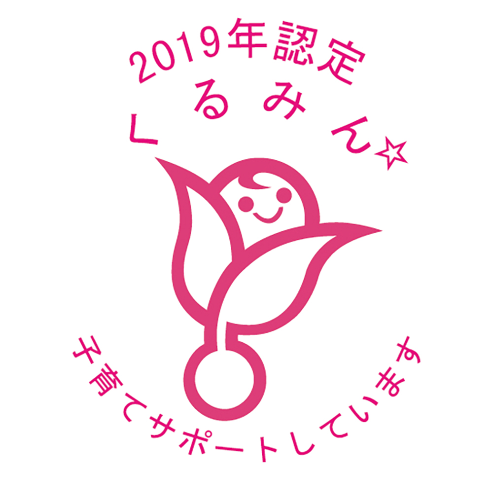 当社は、「子育てサポート企業」として、下記の目標に取り組み、厚生労働大臣の認定を受けた証「くるみん」認証を2019年に受けました。
