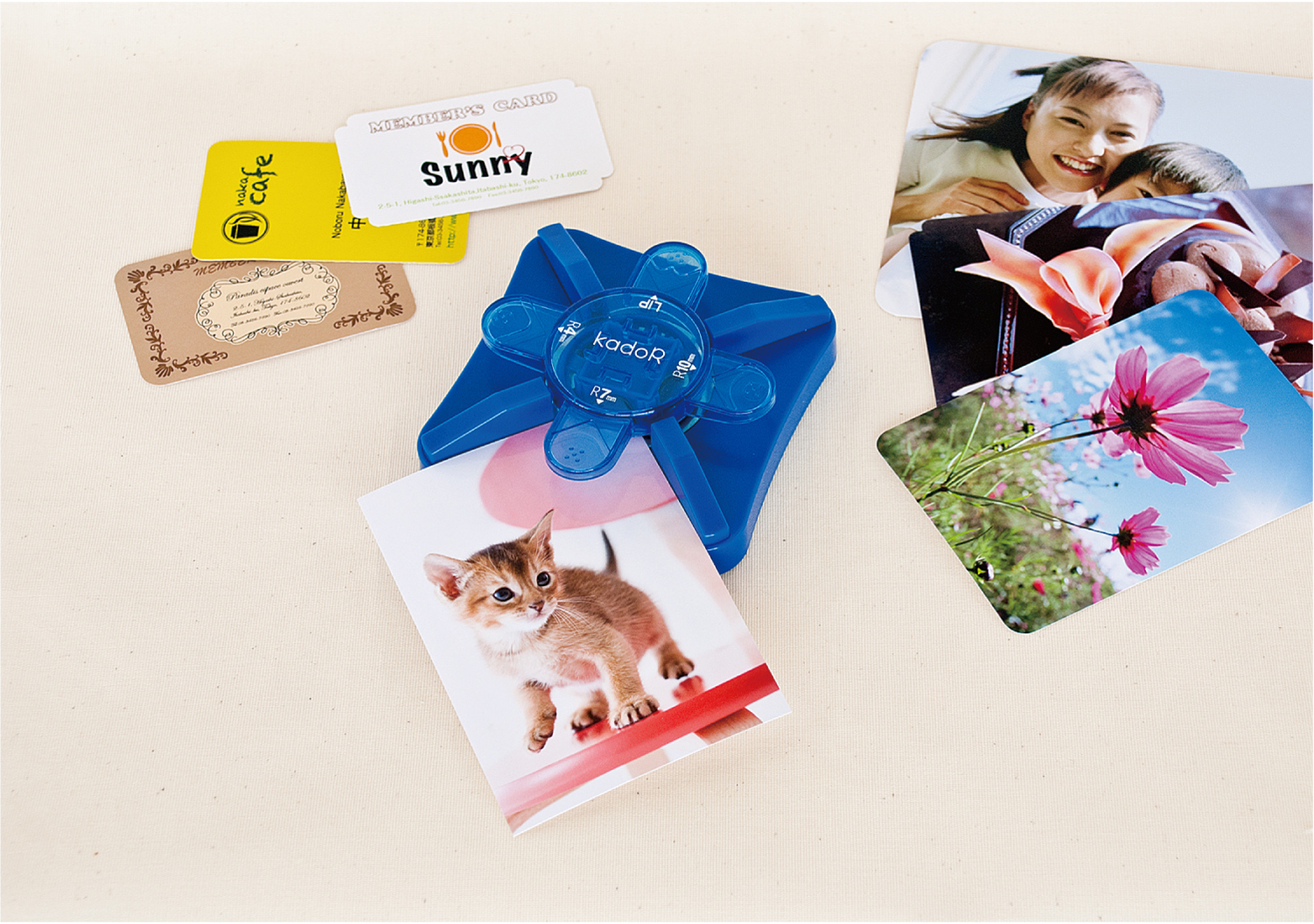 写真や名刺、カード、ラミネートしたPOPの角も丸くカットできます