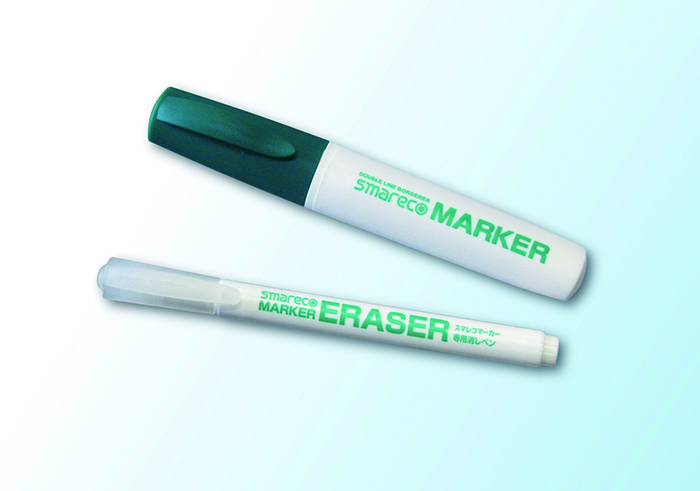 「スマレコマーカー」は、緑とオレンジの2色ラインが特徴のマーカーペンです。