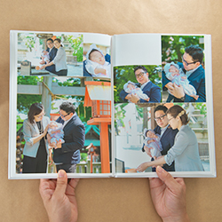 写真集作成に必要な作業は、表紙に使用する写真を1枚選ぶだけ。ページレイアウトは弊社デザイナーが編集を行いますので、被写体の配置やシーンに合わせて美しくレイアウトされた写真集を簡単に注文できます。