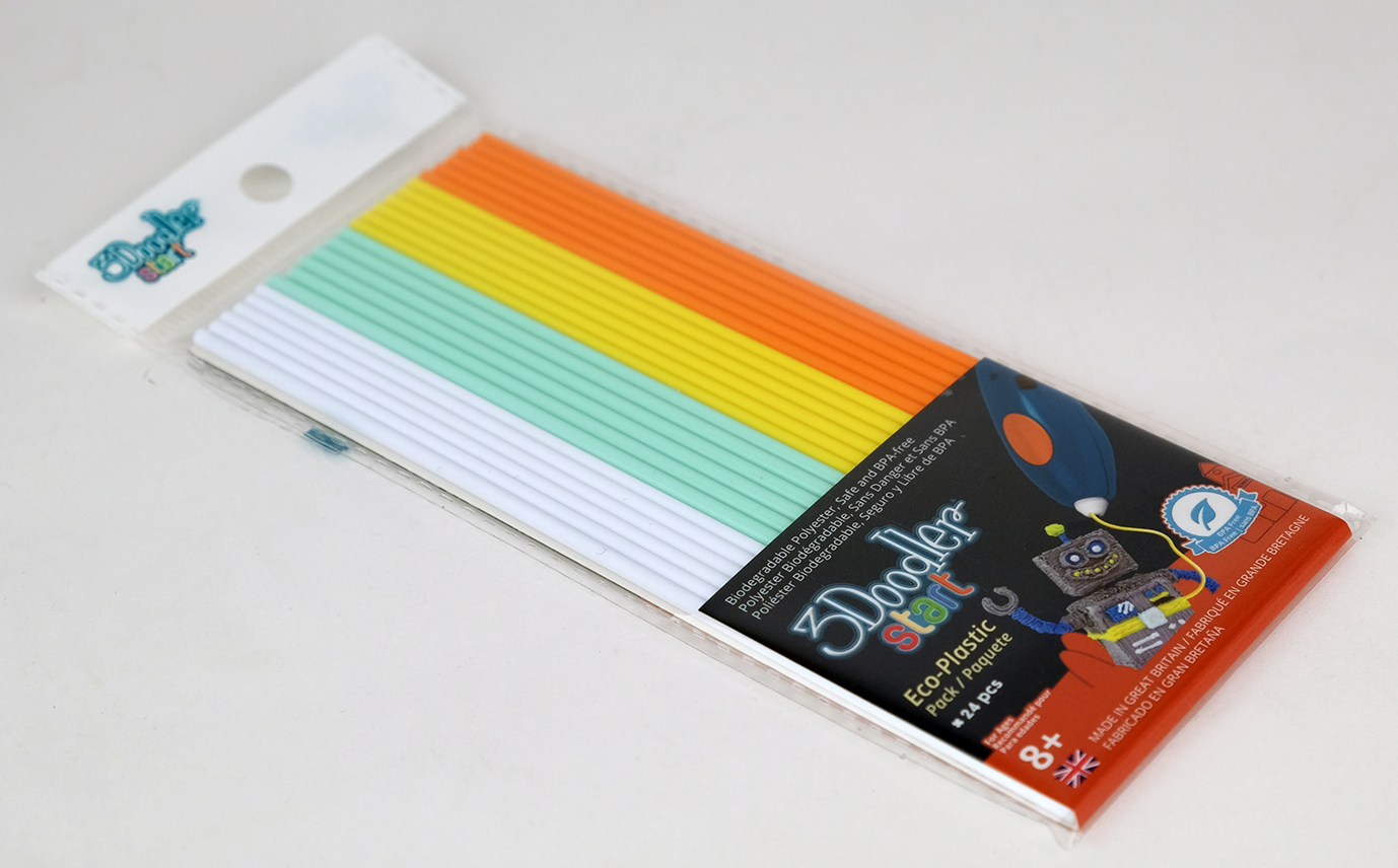 「3Doodler Start」には低温でも溶ける新開発のバイオプラスチック樹脂を採用し、安全に立体物を創れる仕様にしました。