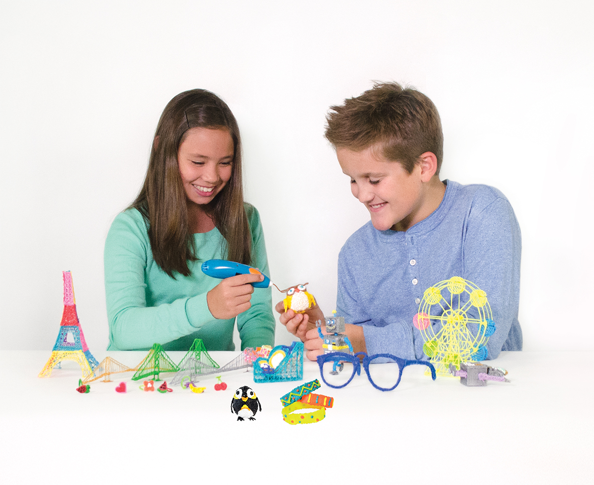 「3Doodler Start」は、パソコンやソフトを使わず、空中に文字や絵を描くような感覚で、思いのままに立体アートを製作できるお子様向けの3Dペンです。