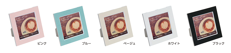 カラーラインナップは全5色。お部屋の雰囲気や写真のテイストに合わせやすいピンク・ブルー・ベージュ・ホワイト・ブラックからお選びいただけます。