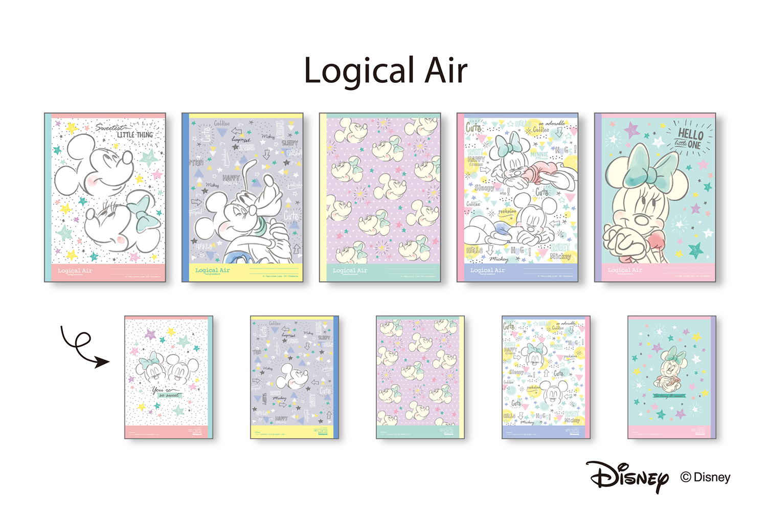 約20%の軽量化を実現した機能性ノート 『ロジカル・エアーノート』に 「ミッキー&フレンズ」と「すみっコぐらし」の新デザイン2種を追加