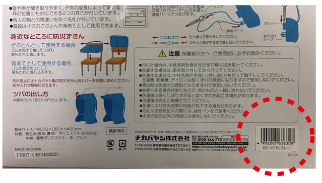 〒355-0344 埼玉県比企郡ときがわ町大字日影字田向296-1 ナカバヤシ株式会社 防災ずきん係 TEL:0493-65-3881 |