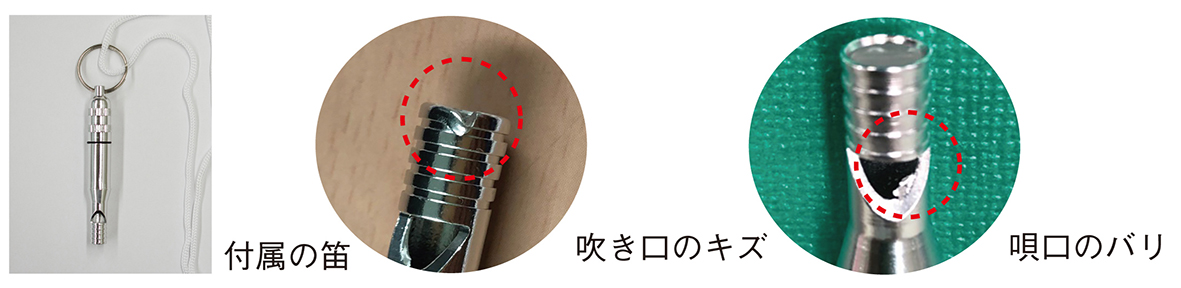 ご購入いただいたお客様におかれましては、お手元の製品をご確認のうえ、異常のある笛は弊社にてお取り換えいたしますので、弊社あてに着払いにてご送付いただきますようお願い申し上げます。到着後、笛の代替品をお送りいたします。