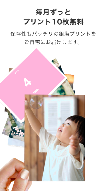 アップロードした写真を毎月最大15枚(※1)まで無料でプリントできるサービスを2019年9月9日より開始します。(※2)