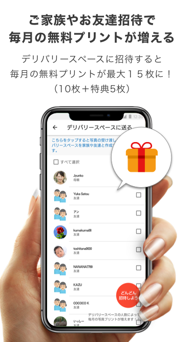 当アプリをご友人に紹介いただくと、1人につき1枚分の無料枠がお友達紹介特典として付与されます。