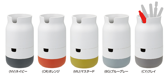 カラー展開は落ち着いた色合いの5色(ネイビー、オレンジ、マスタード、ブルーグレー、クレイ)。磁器の様なマットな質感とうつわのような丸みのある形状で、インテリアに馴染みやすいデザインです。