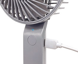 付属のUSBケーブルでパソコンやモバイルバッテリーからUSB給電ができる充電式※です。また、風量を「弱・中・強」の3段階で調整することができ、環境に合わせて快適な風量を選ぶことができます。