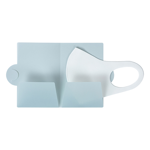 - マスクの表面に触れることなく、ヒモ部分をもって収納できる二つ折り構造