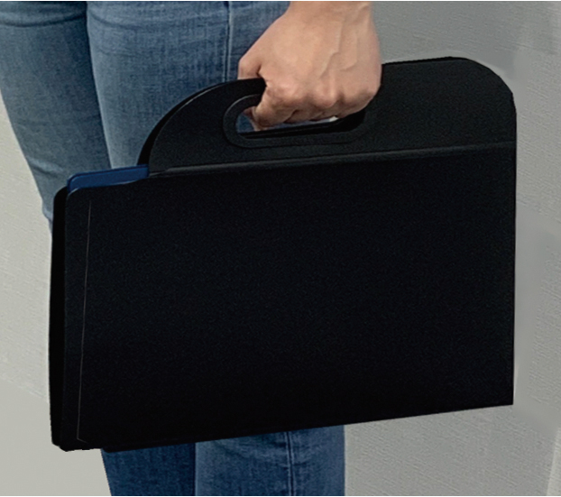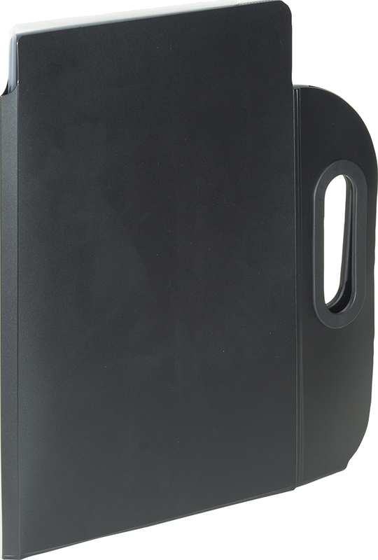 | 本体仕様 | 本体サイズ:ヨコ610×タテ465×高さ80mm(見開き時) ヨコ375×タテ465×厚み15mm(折りたたみ時) 本体重量:252g 本体・取手保護部材質:樹脂 面ファスナー、透明ホルダー(定規・カッターポケット)付き |