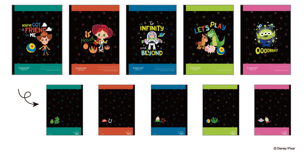 『スイング・ロジカルノート 5冊パック』のラインアップとして「トイ・ストーリー」「スヌーピー」の新デザイン2種を追加しました。表紙、裏表紙それぞれに異なるアートを使用し、各キャラクターの世界観が溢れる可愛いデザインです。