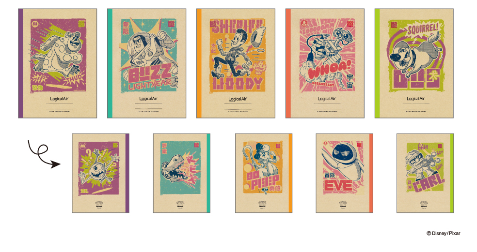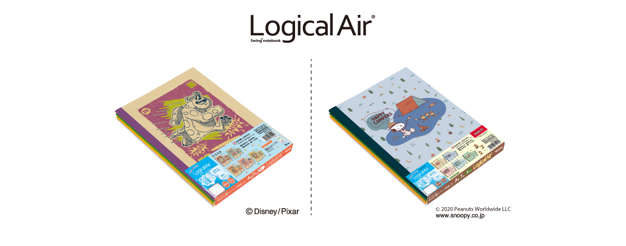 『ロジカル・エアーノート 5冊パック』のラインアップとして「ピクサー」「スヌーピー」の新デザイン2種を追加しました。表紙、裏表紙それぞれに異なるアートを使用し、各キャラクターの世界観が溢れる可愛いデザインです。