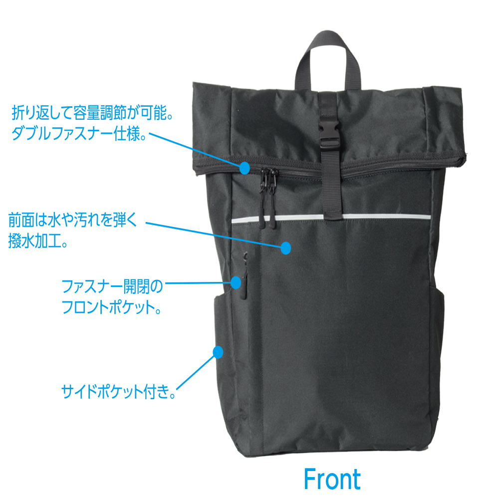 - 折り返して容量調節が可能なダブルファスナー仕様です。