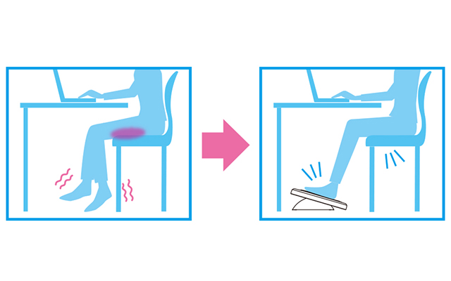 - 足を乗せて正しい姿勢がとれることで、長時間のデスクワークで体にかかる負担を軽減できる。