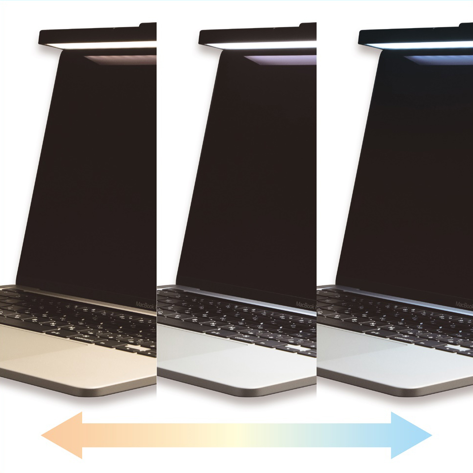 PC作業中の手元をやさしく照らすLEDライトです。PCディスプレイ上部をバネ式クリップで挟むだけで取り付け可能、USB接続で簡単に使えます。ノートPCの内蔵カメラを傷つけないクリップ形状です。(※)