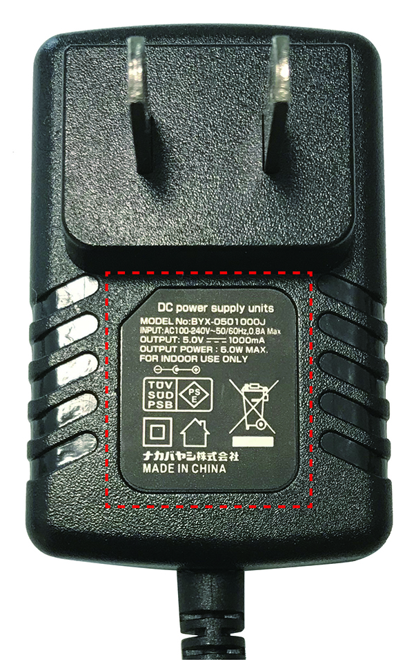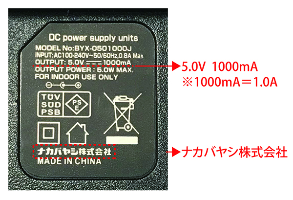 現在、下記3.の付属のACアダプター(定格出力:5.0V/1.0A)をお使いいただいているお客様におかれましては、発火にいたるご心配はございませんが、今後の安全性確保のためにも、この度の対策部品への無償交換に必ずお申し出くださいますようお願いいたします。