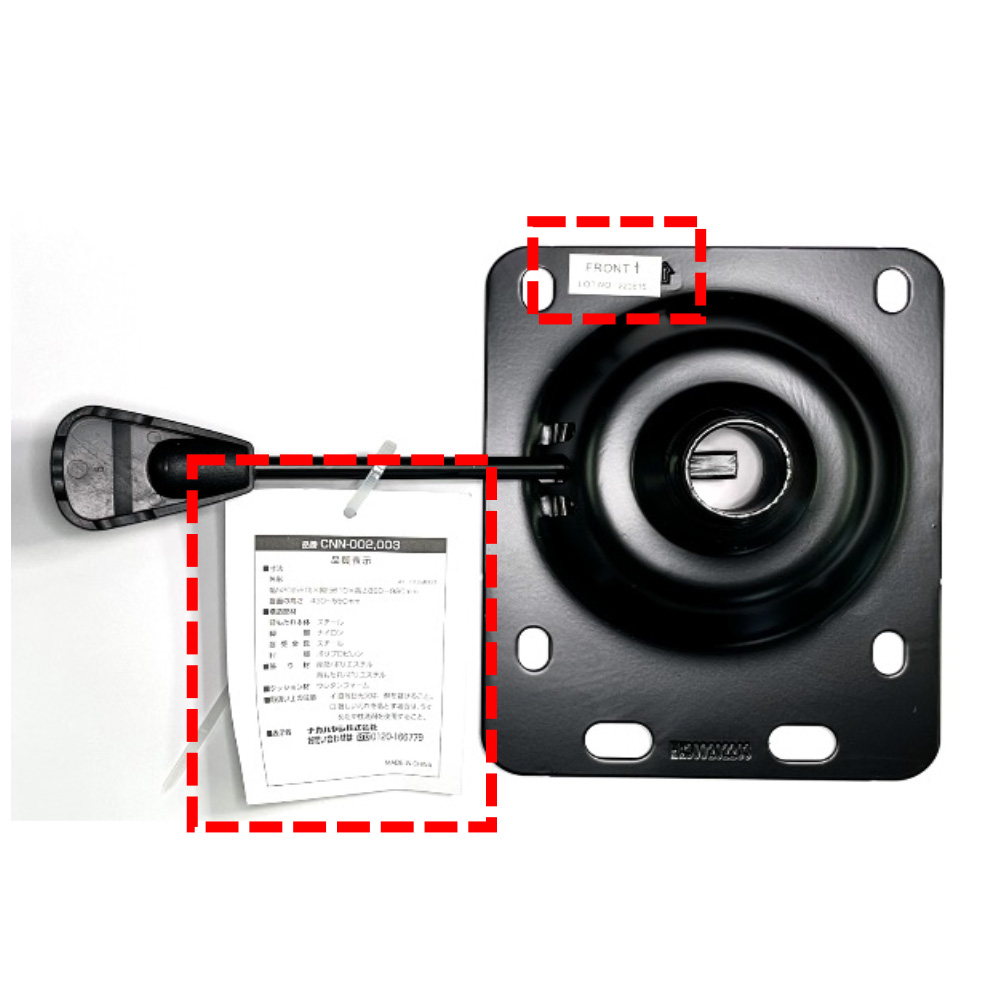 シートプレートに「品質表示タグ」と「FRONTシール」あり | |