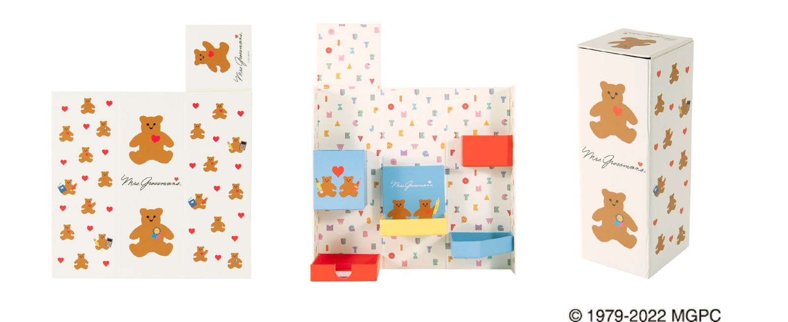 幅広い世代に人気のステッカーブランドとコラボ 紙箱型収納用品『ライフスタイルツール ミセス・グロスマン』発売