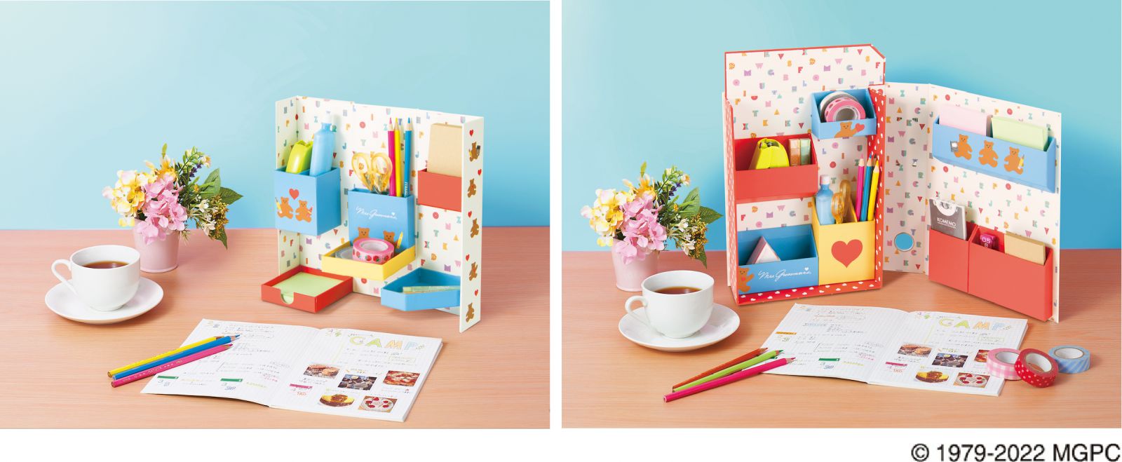 「ライフスタイルツール」のシンプルな形状はそのままに、「ミセス・グロスマン」のベアやハート、アルファベットを散りばめた、ポップなカラーリングがかわいいデザインを追加しました。