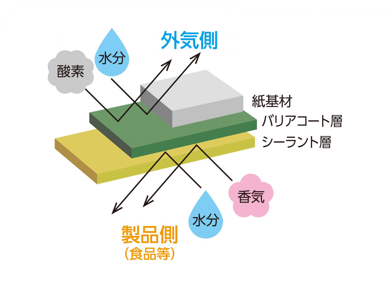 - 「SILBIO BARRIER」は、王子グループが長年培ってきた製紙技術と水系技術を駆使した、リサイクル可能な紙素材でありながら高いバリア性を備えた機能紙です。紙基材に付与したバリアコート層が、酸素、水蒸気、香気の透過を防ぎます。