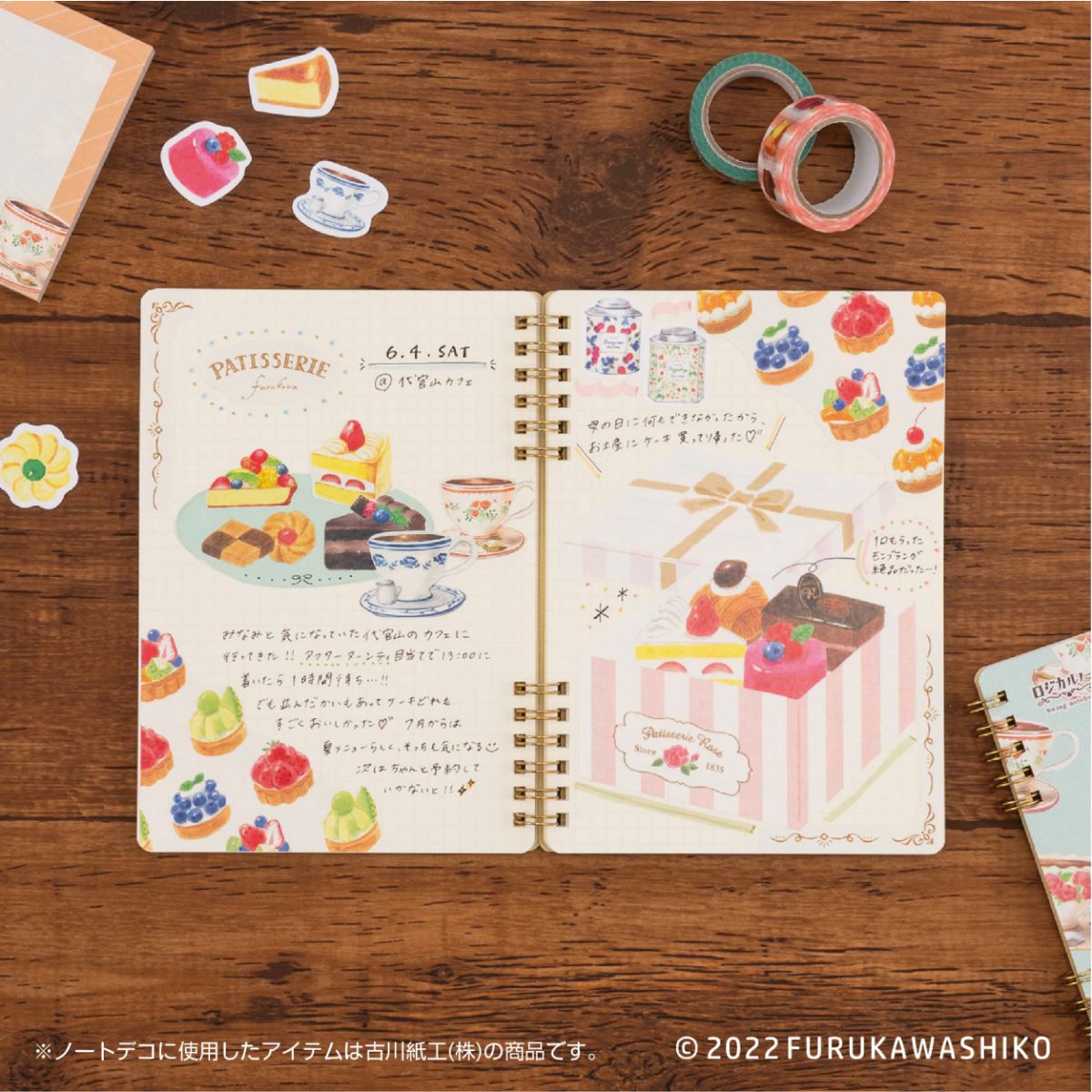 「スイング・ロジカルWリングノート 古川紙工 オトメ時間」は古川紙工(株)の「オトメ時間シリーズ」のイラストを表紙デザインに採用したスイング・ロジカルWリングノートです。デパ地下のショーケースを眺めている時のトキメキを表現した「ケーキ」、「クッキー」、「フルーツタルト」、「ティータイム」のデザイン4種各3サイズ 計12品番のラインアップです。