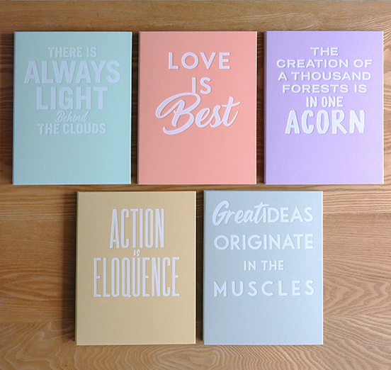 偉人の名言を様々なフォントで印字したメッセージボード風デザイン