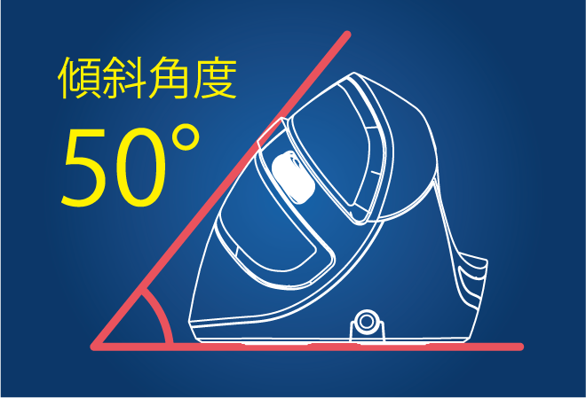 接地面に対し50°の傾斜角をつけることで手首のひねりを軽減し、より自然な握り心地、操作感を実現しています。(※感じ方には個人差があります)