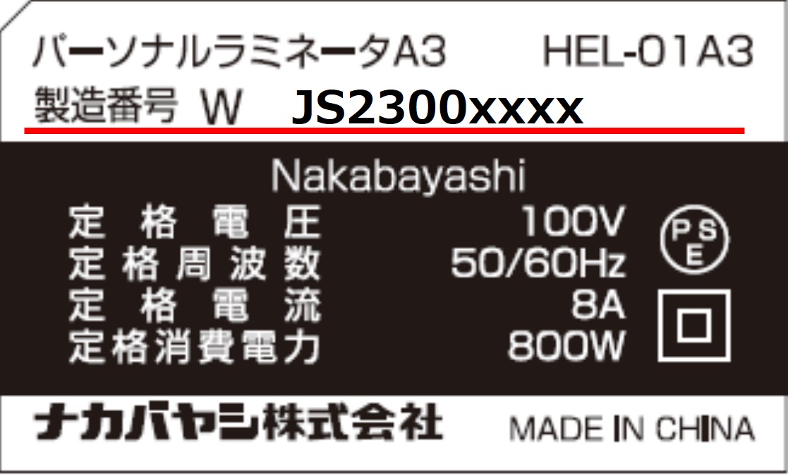 パーソナルラミネータA3 「HEL-01A3」ご使用に関するお知らせ