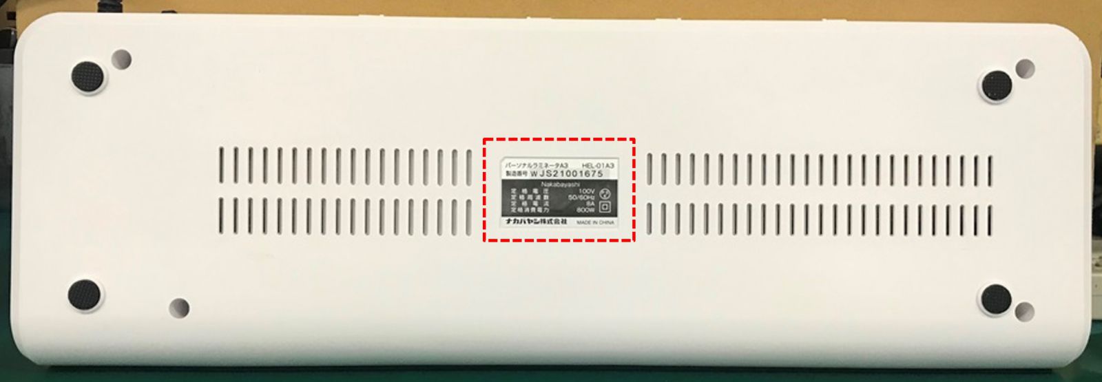 ※「製造番号」の確認方法(製品の底面、中央部に貼り付けの定格銘板でご確認ください)