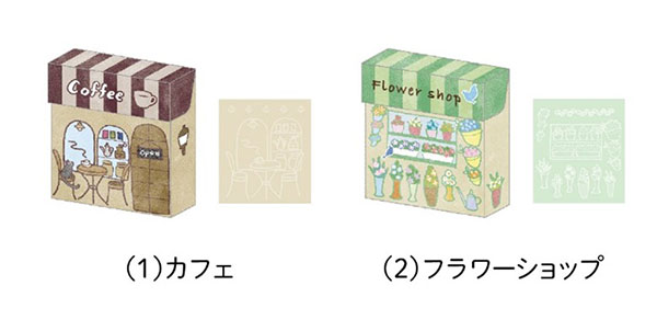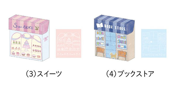 | カラー展開 | (1)カフェ、(2)フラワーショップ、(3)スイーツ、(4)ブックストア |
