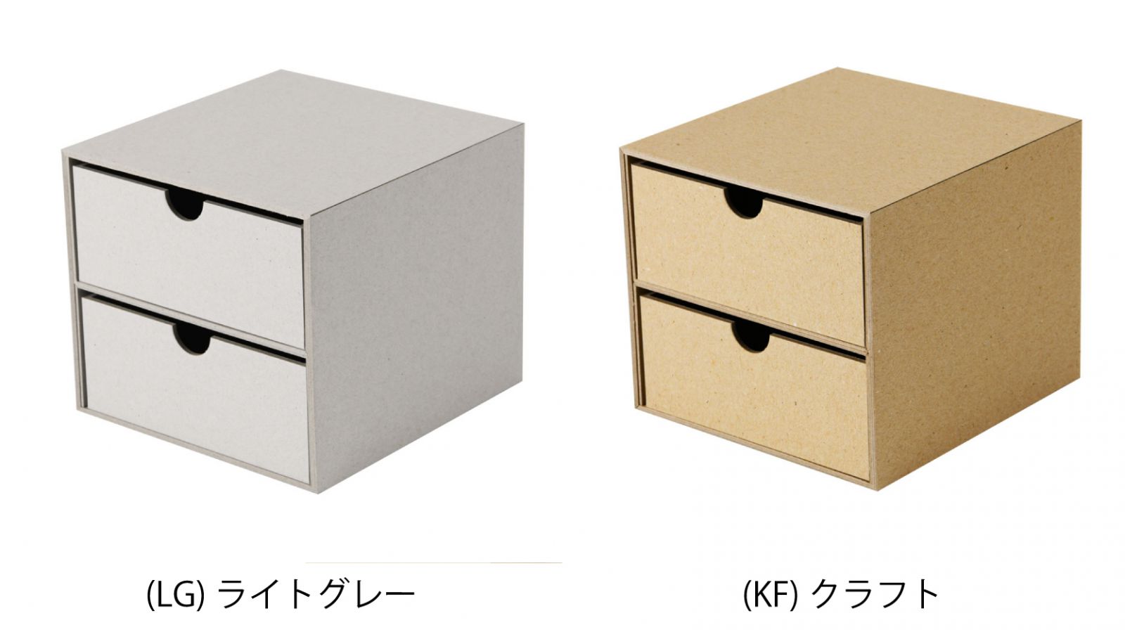 「リトレイ」は、古紙パルプ配合率100%の再生紙を使用した紙製整理箱です。デスク周りや趣味の道具まで、シーンや用途に併せて使い分けることができます。シリーズ第2弾として、チェスト2段・チェストワイド2段・ハンドルボックスの3種計6品番を、卓上収納シリーズとして新たにラインアップしました(第1弾は箱型の紙製整理箱をラインアップ)。チェストタイプは、2段ずつ積み重ねて使用できます。