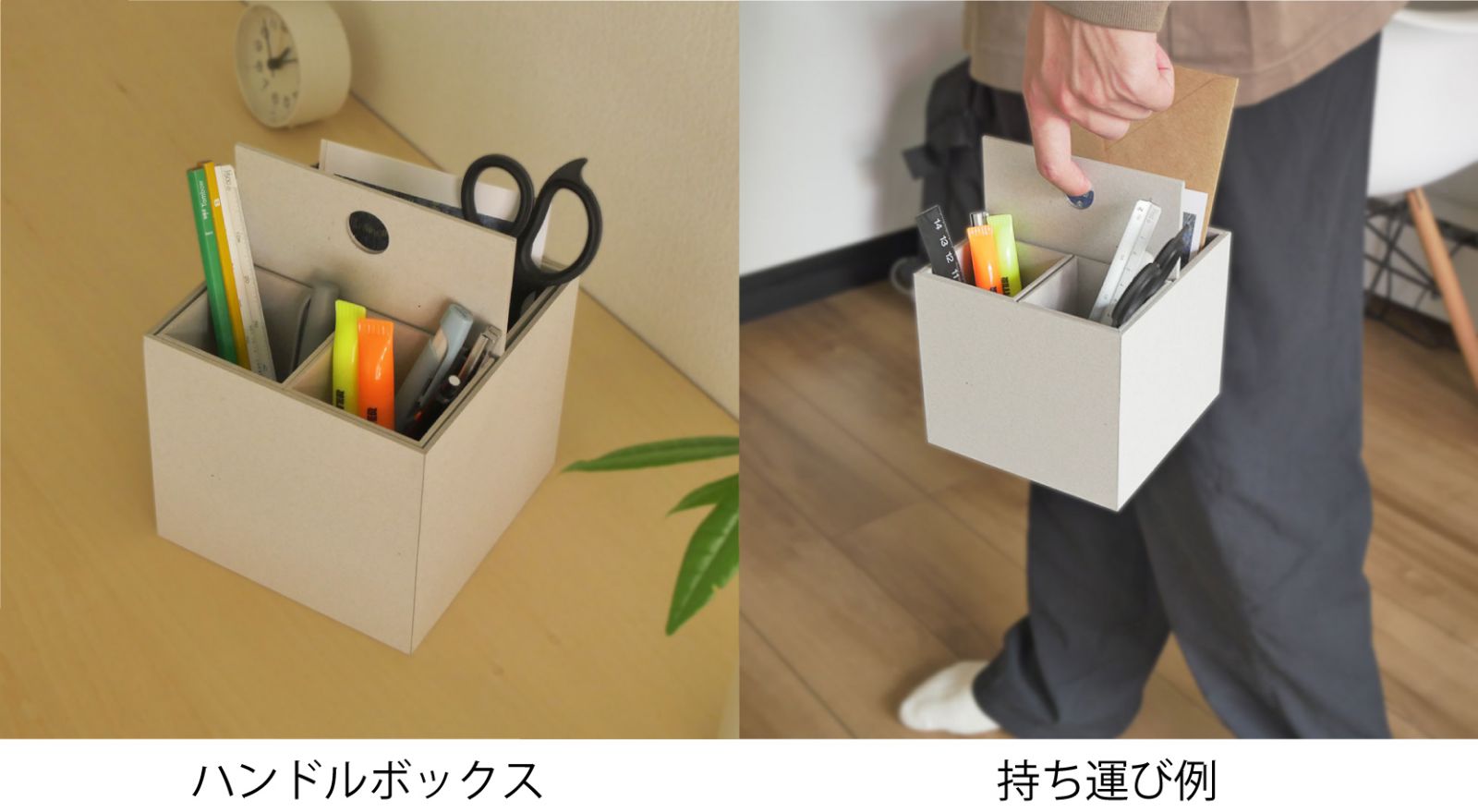 - 指一本で持ち運びができるハンドルがついたハンドルボックス