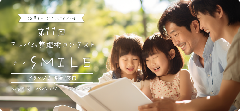 第11回目となる今回は、『SMILE』。実際につくられているアルバムの様子(撮影画像の投稿)と共に、家族の思い出を綴るアルバムへのこだわりや独自のルール、整理方法など皆さんの笑顔溢れる整理術を募集します。