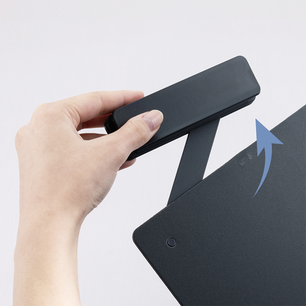 - 開け閉めがしやすいワイドクリップカバー付きの綴具