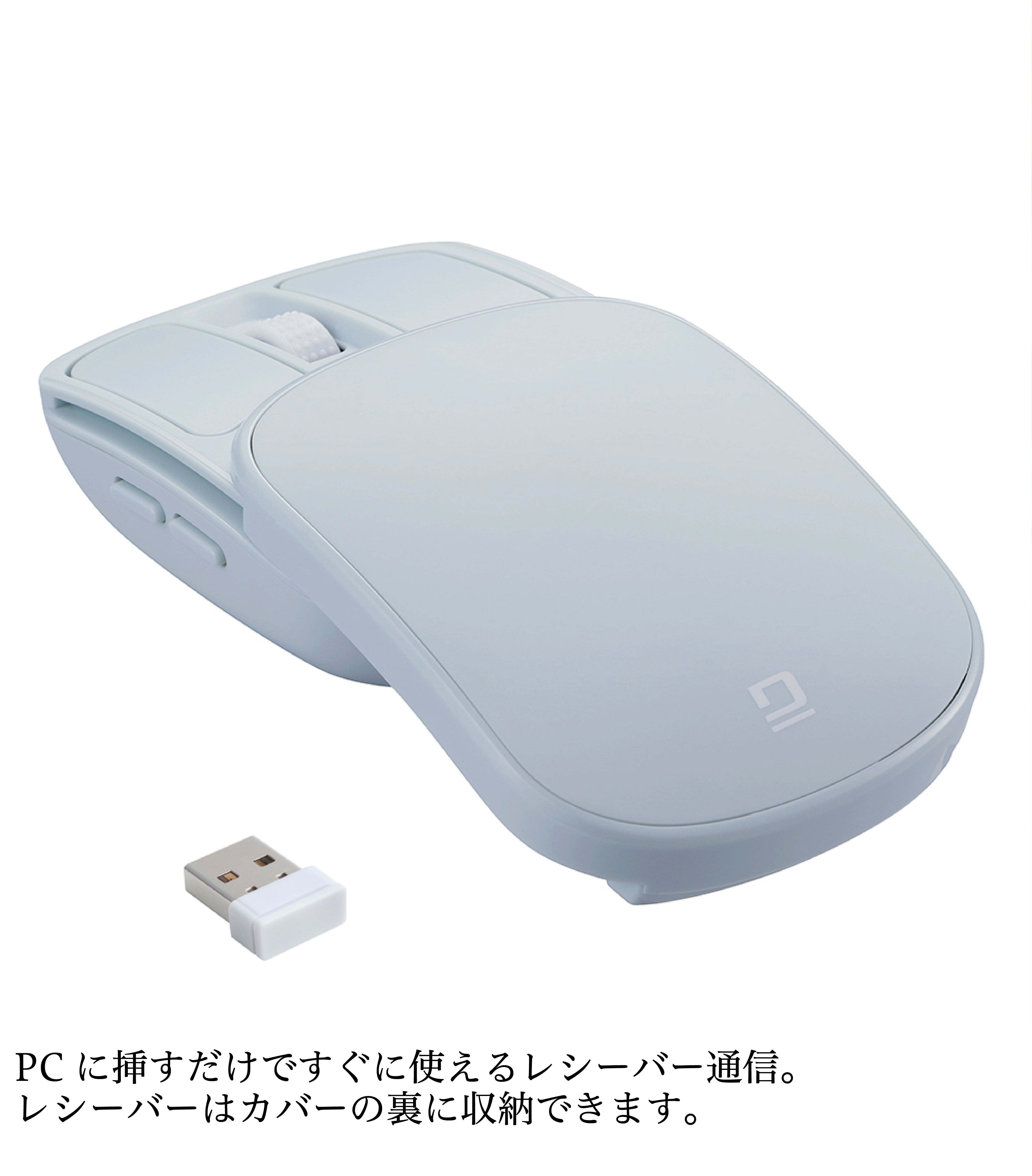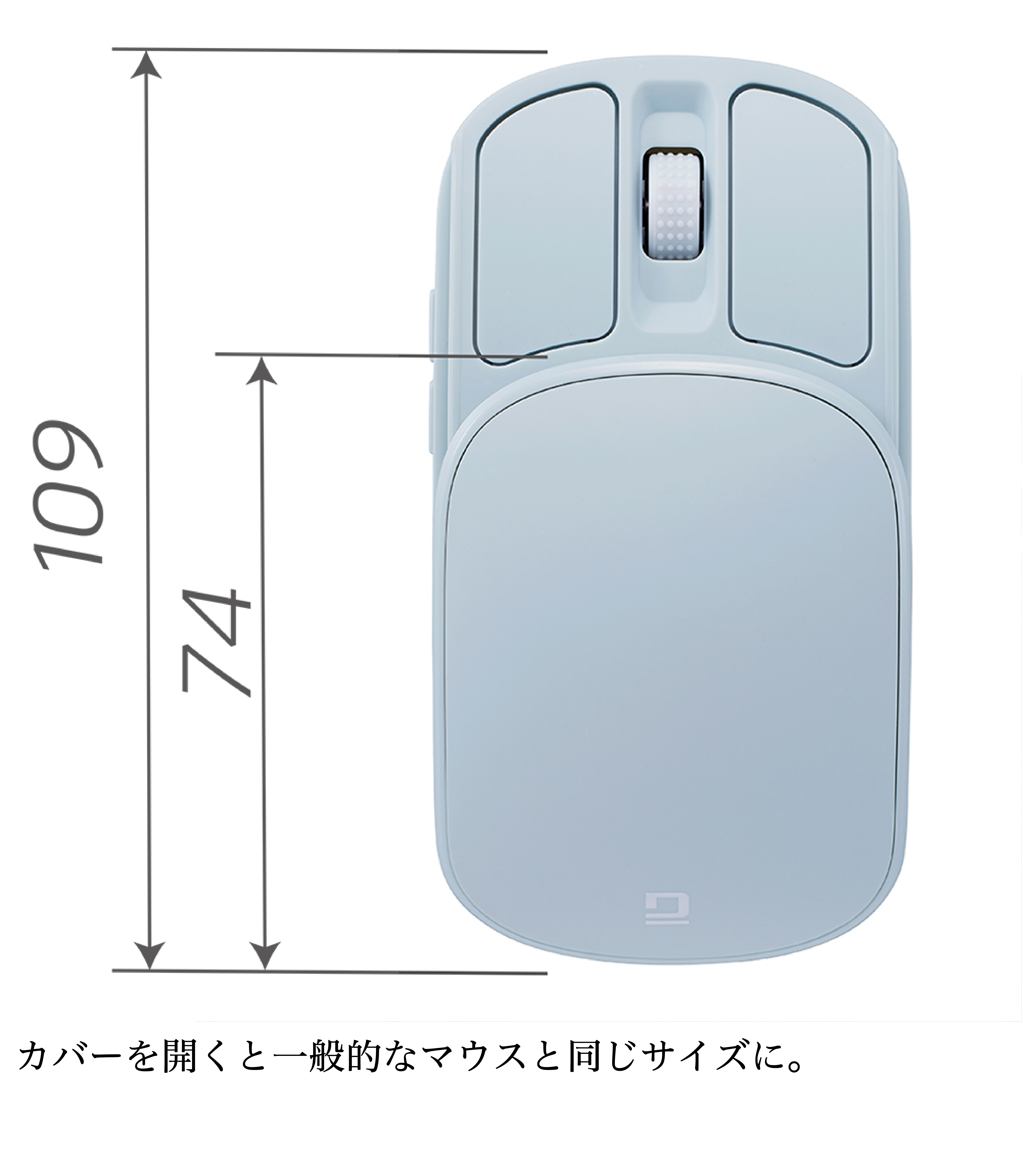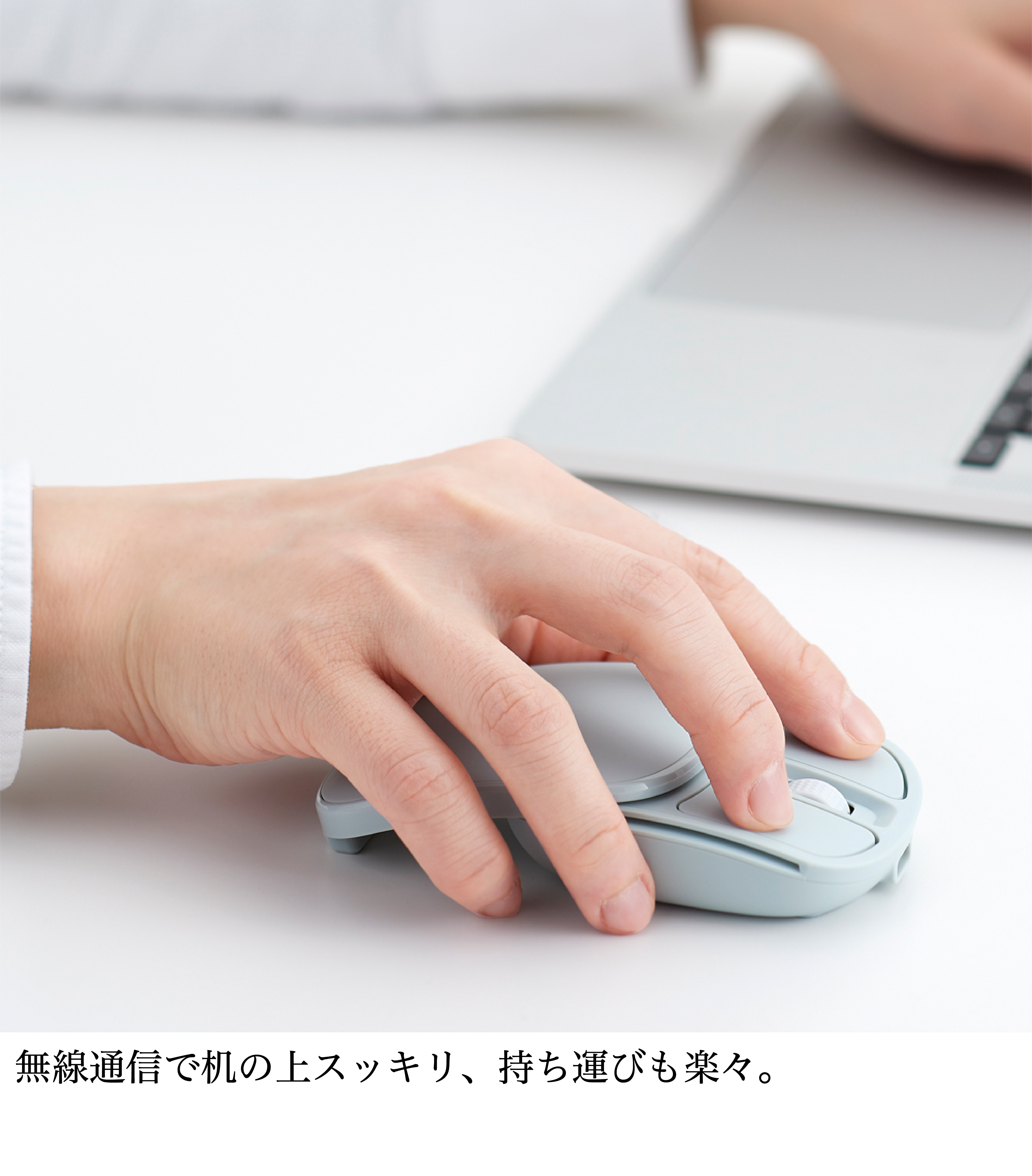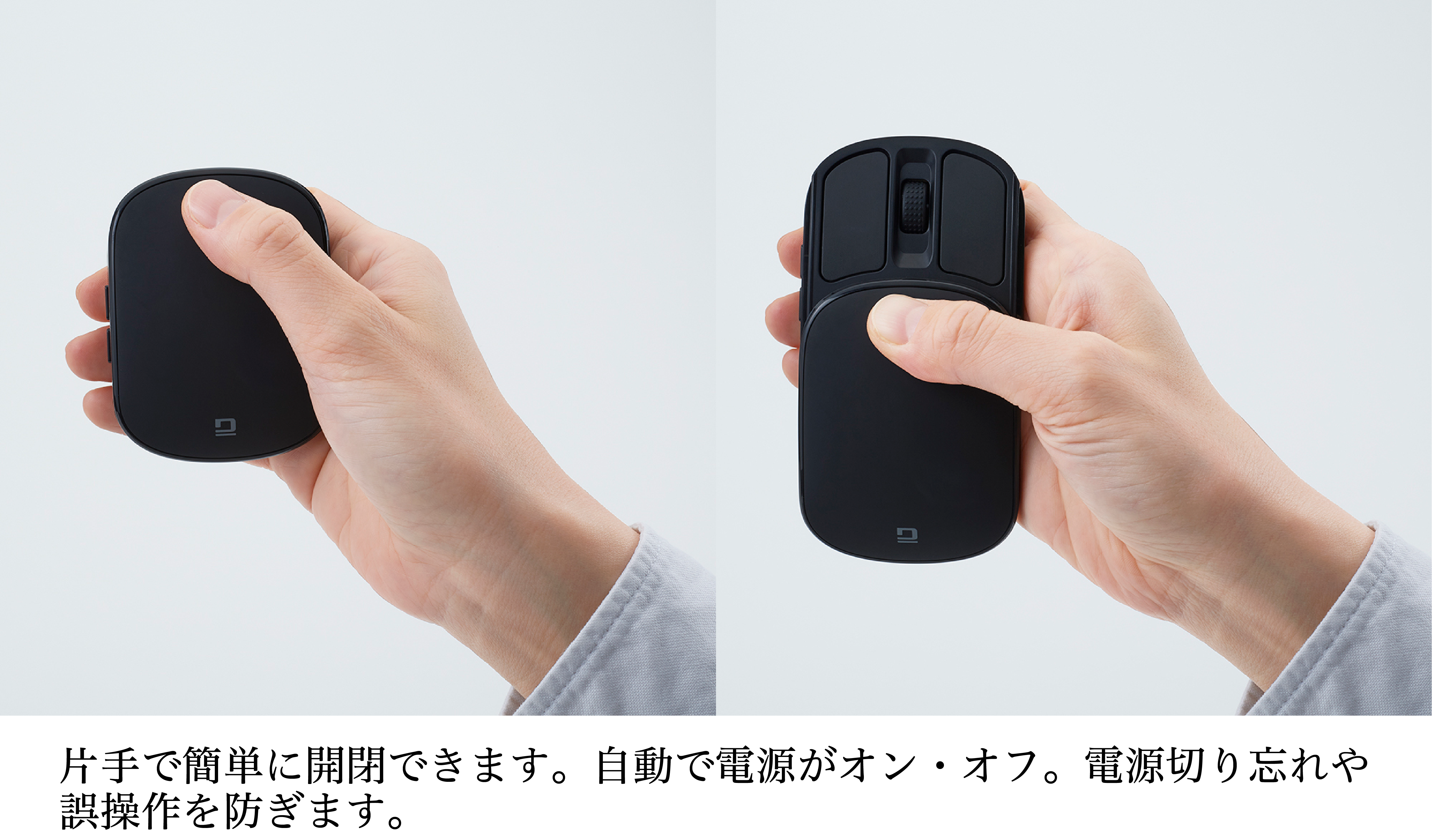 カバーを閉じればコンパクトに、開けば操作性アップ!移動が多い方にうれしいマウスです。