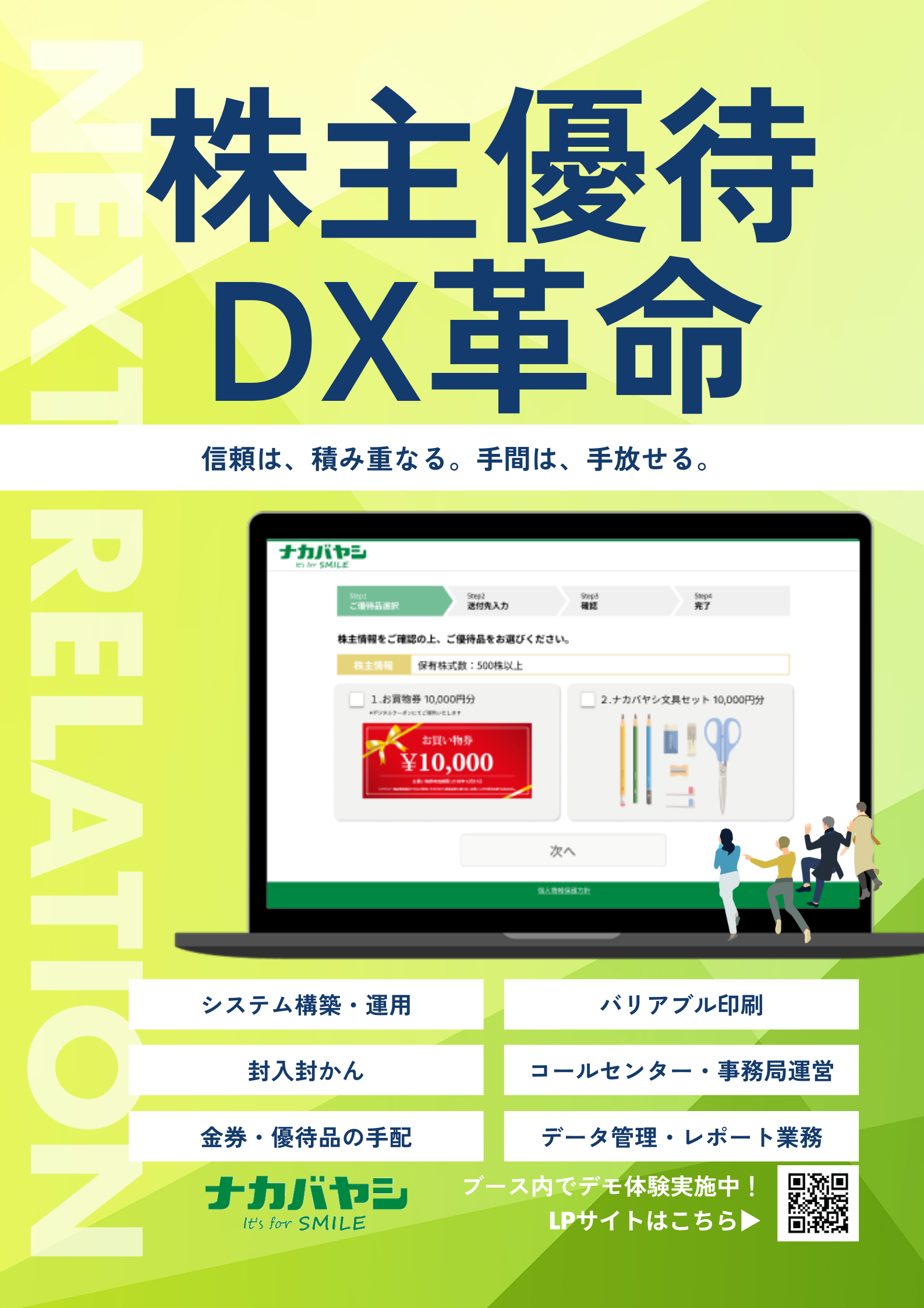 当社ブース(ブース番号:7-2)では、株主優待BPOサービスとして大きく以下4つのサービスをご紹介いたします。