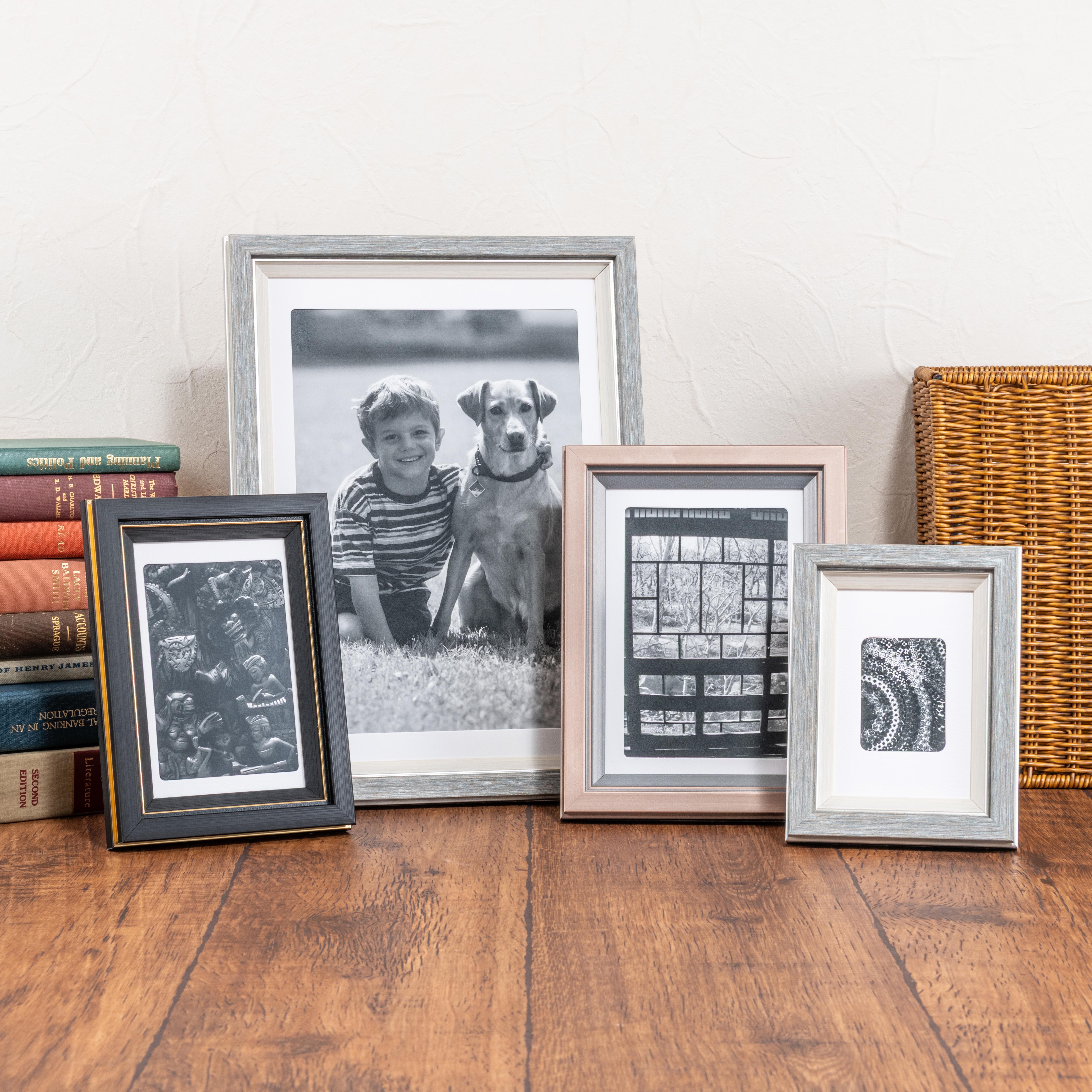 「モダンエッジフォトフレーム」は、白のマットが1枚付いているフォトフレームです。マット使用時・マット不使用時で2種類のサイズに対応しています。マットを使用すると視覚的にアクセントが加わり作品を引き立てます。