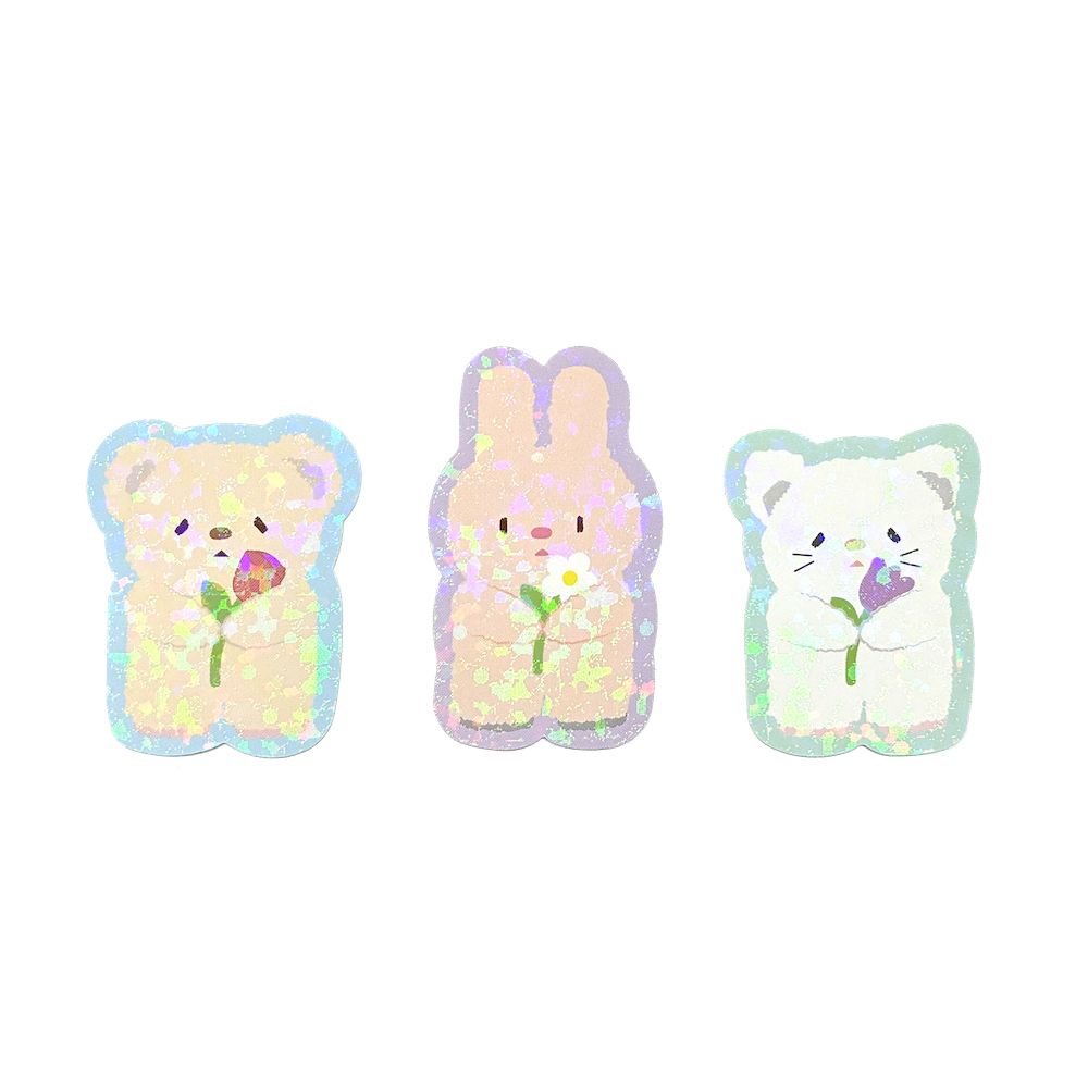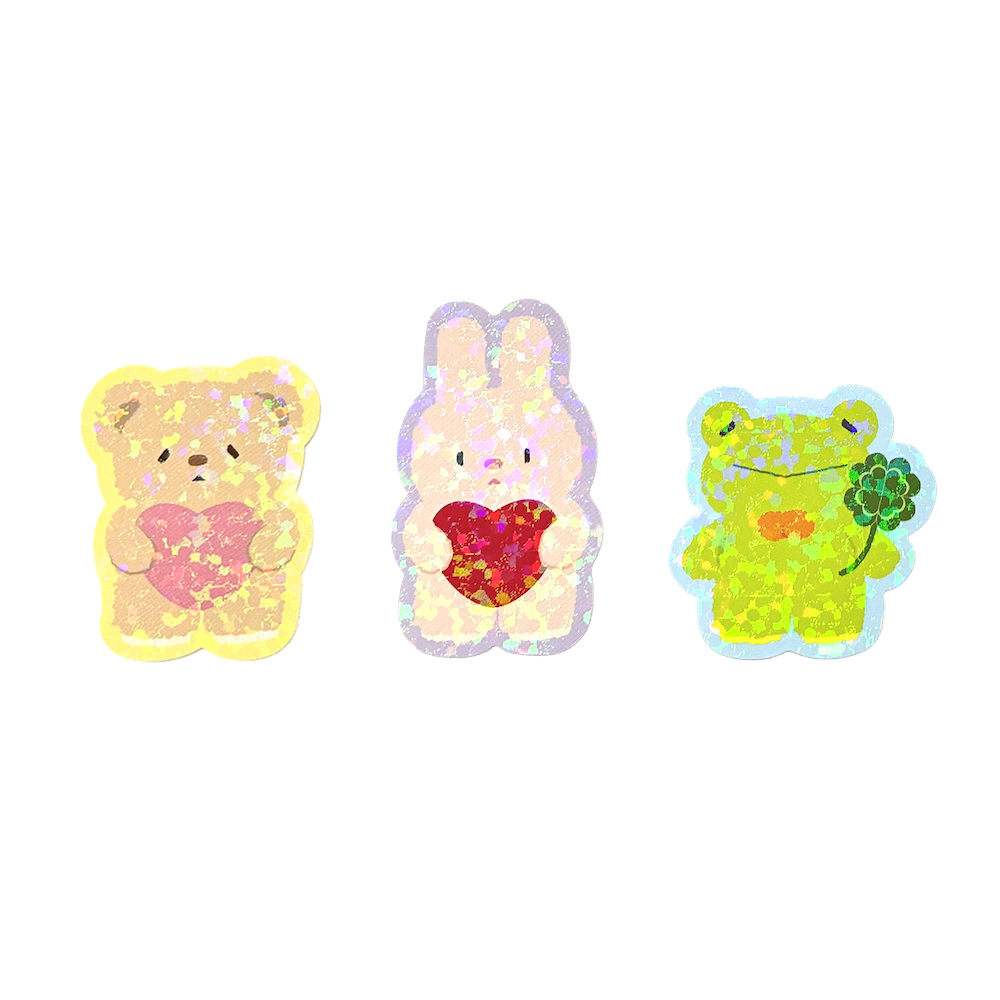 - きらきらのホログラムと、淡い色味が可愛らしい集めたくなるステッカーです。涼しげな、きらきら輝くホログラムが夏にぴったり