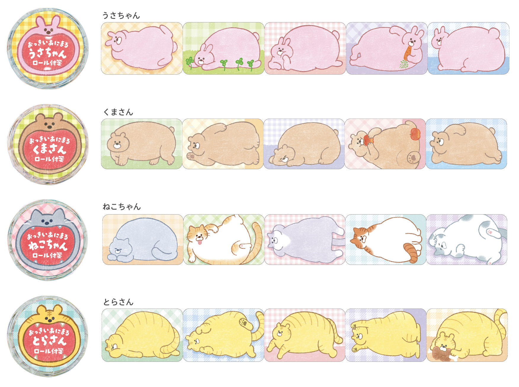 ナカバヤシオリジナルデザイン『おっきいあにまる』のイラストが可愛らしいロール付箋 第2弾です。好評だったねこちゃんに、新しくうさちゃん、くまさん、とらさんが仲間入り。