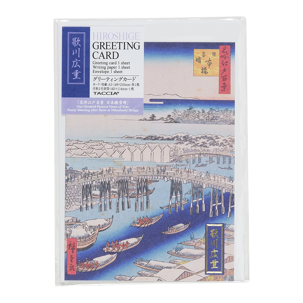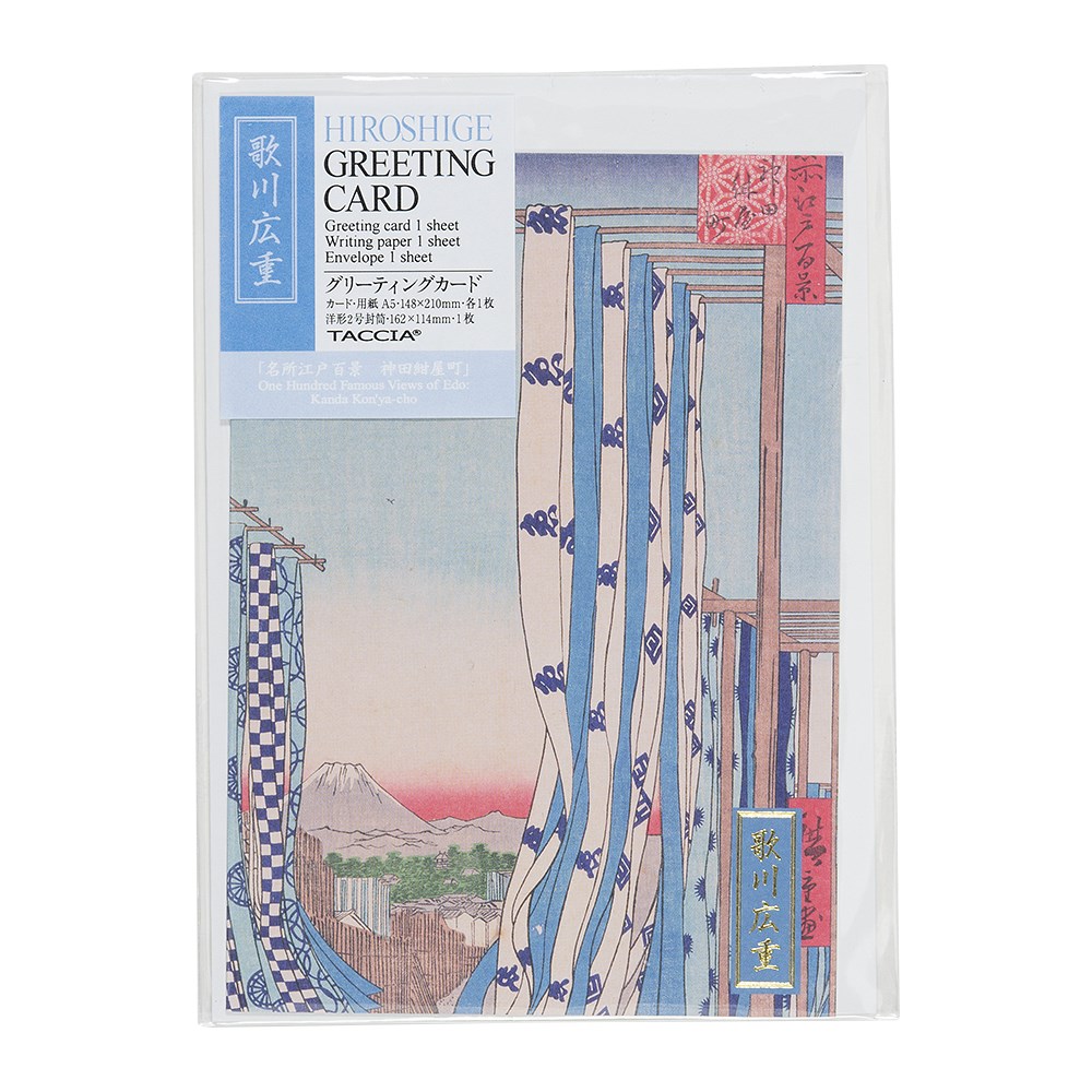 浮世絵を全面にあしらった二つ折りタイプのグリーティングカード。白無地の封筒付き。