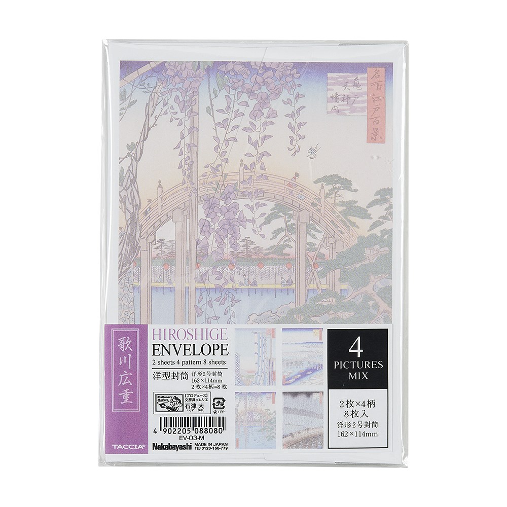 浮世絵をあしらった封筒。別売りのレターパッドがぴったりサイズで収まります。8枚入り(2シート×4柄)