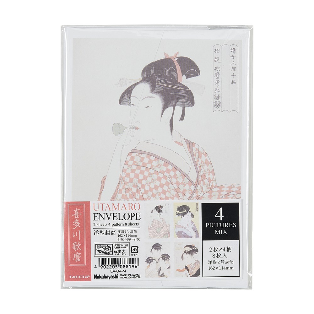 浮世絵をあしらった封筒。別売りのレターパッドがぴったりサイズで収まります。8枚入り(2シート×4柄)