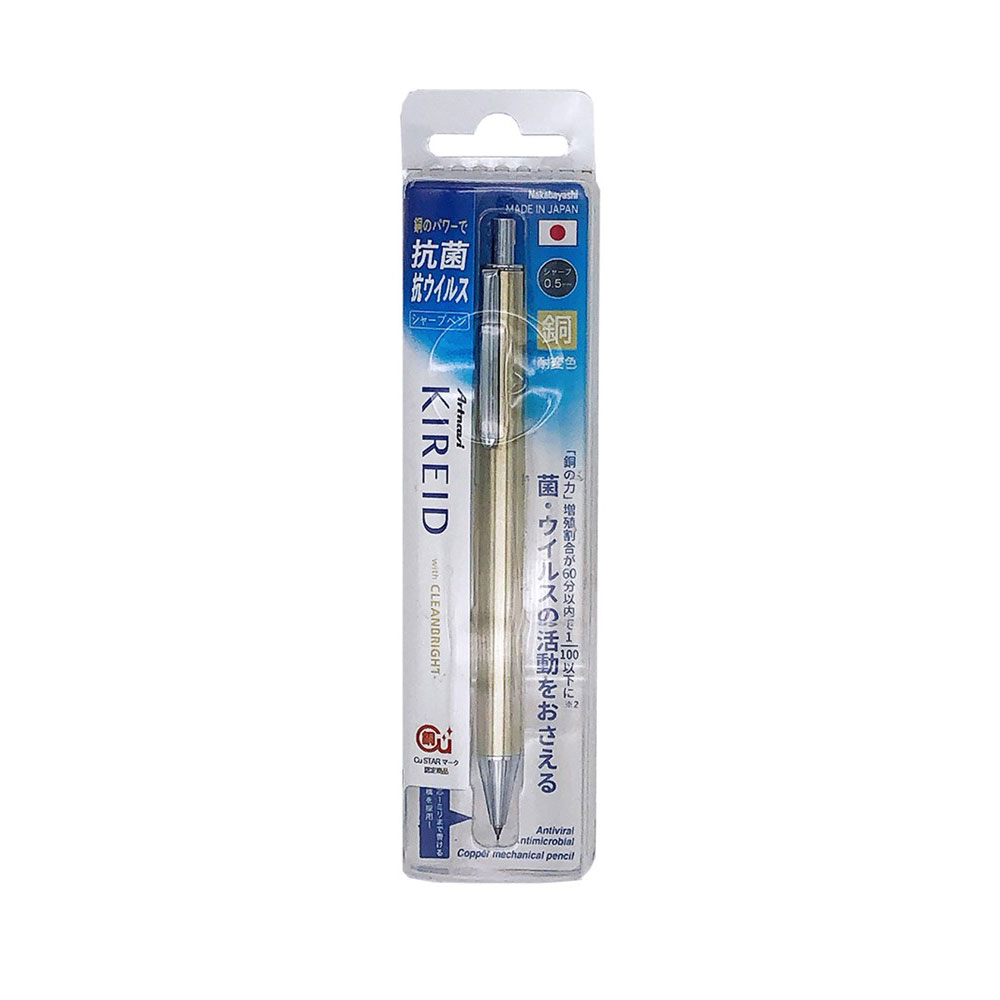 「KIREID 抗菌・抗ウイルス銅 シャープペン」は、施設の受付や衛生環境に配慮が必要なシーンで筆記具を使用する際に使いやすいシャープペンです。抗菌・抗ウイルス・耐変色に優れた銅合金「クリーンブライト®」を本体の軸に使用しています。
