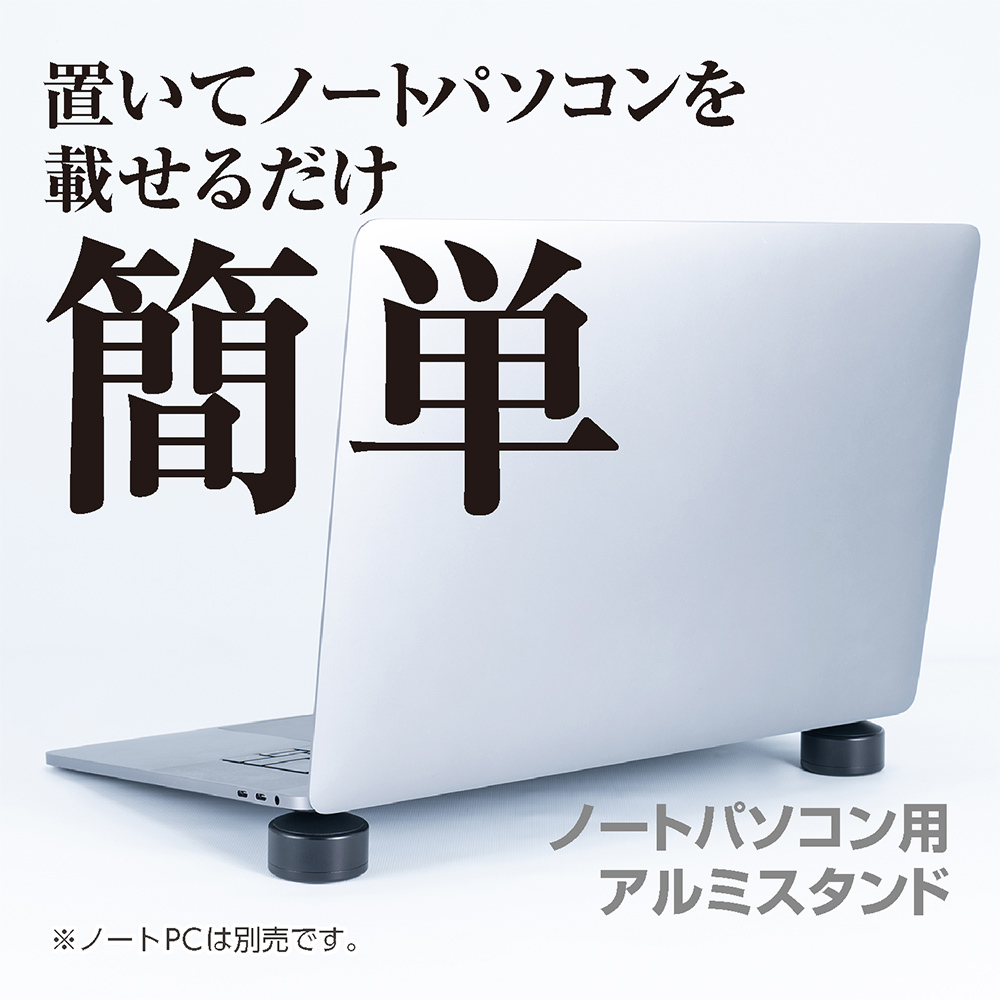 底面を浮かせることで、通気性を確保し、熱暴走や、熱によるノートPCへの負荷を軽減します。素材は耐久性と放熱性に優れたアルミ合金を採用し、高級感のあるシンプルなデザインです。