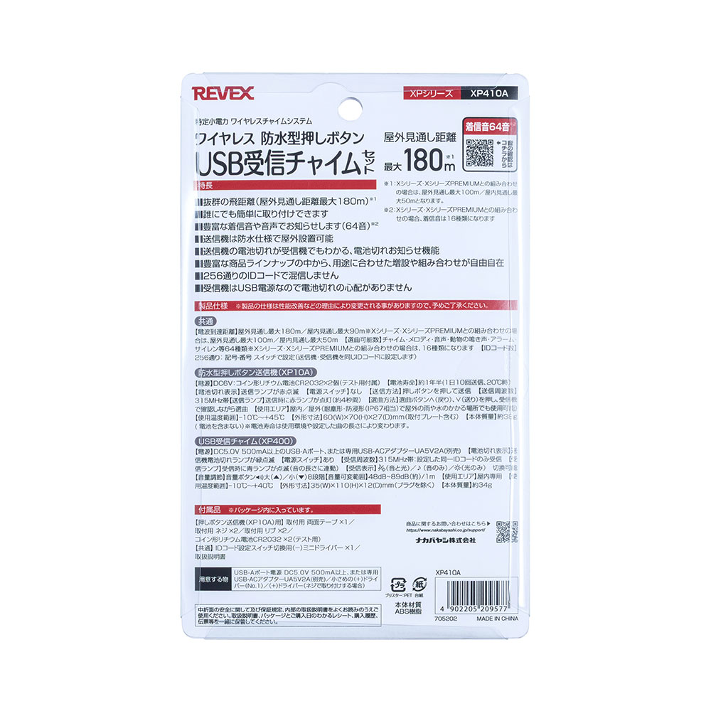 ワイヤレス防水型押しボタンUSB受信チャイムセット